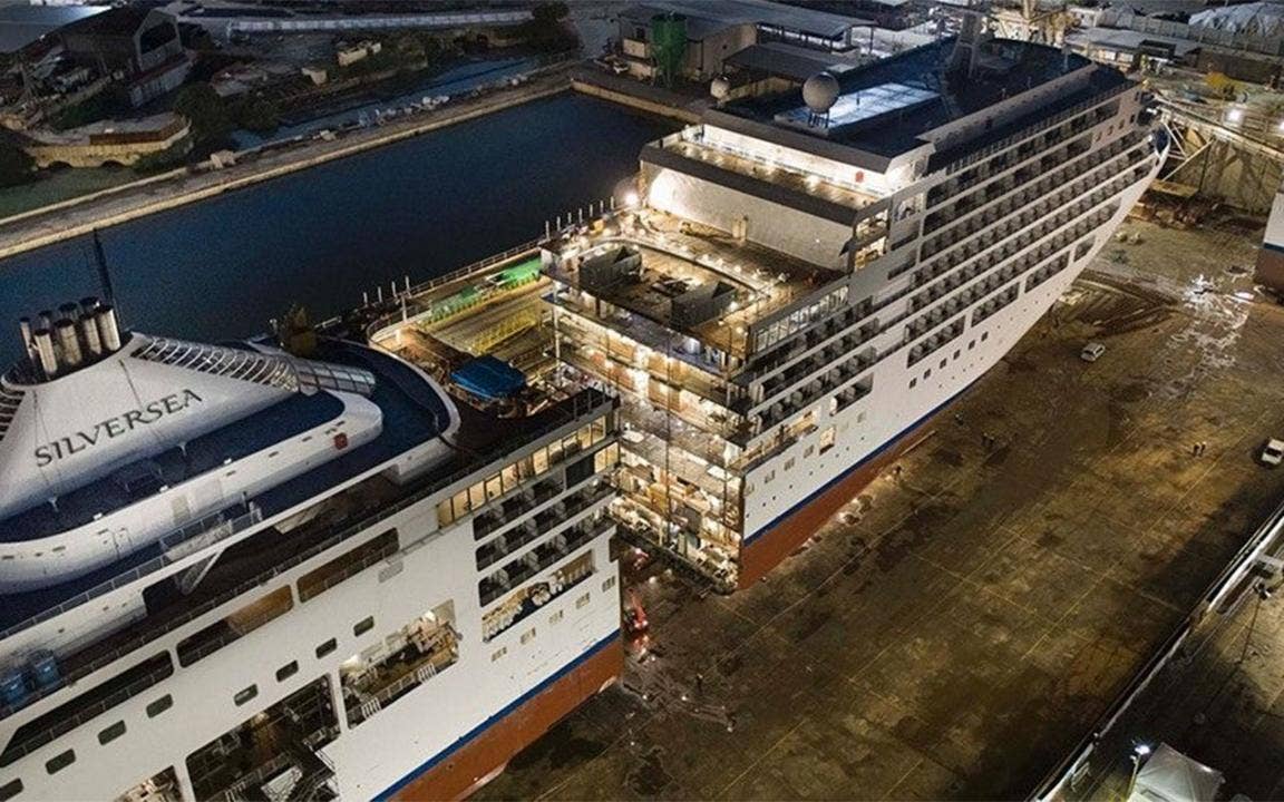 "Silversea luxury cruise ship cut in half for massive 49-foot expansion" It's part of a $100 million renovation. Travel